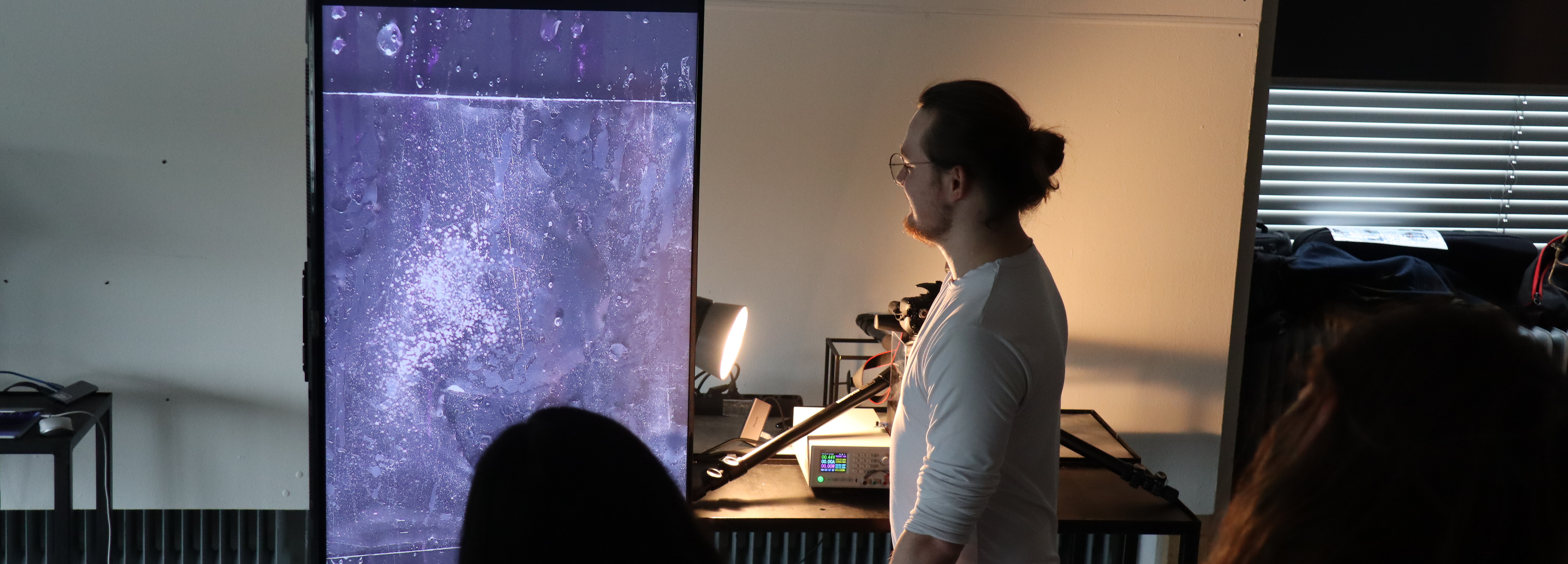 Loopgraf is an installation we designed for an two hour exhibition in the outskirts of Arnhems buitenplaats koningsweg. This exhibition will take you on a journey to what can only be described as a pseudo-religious augmented acoustic illuminated microcosm.